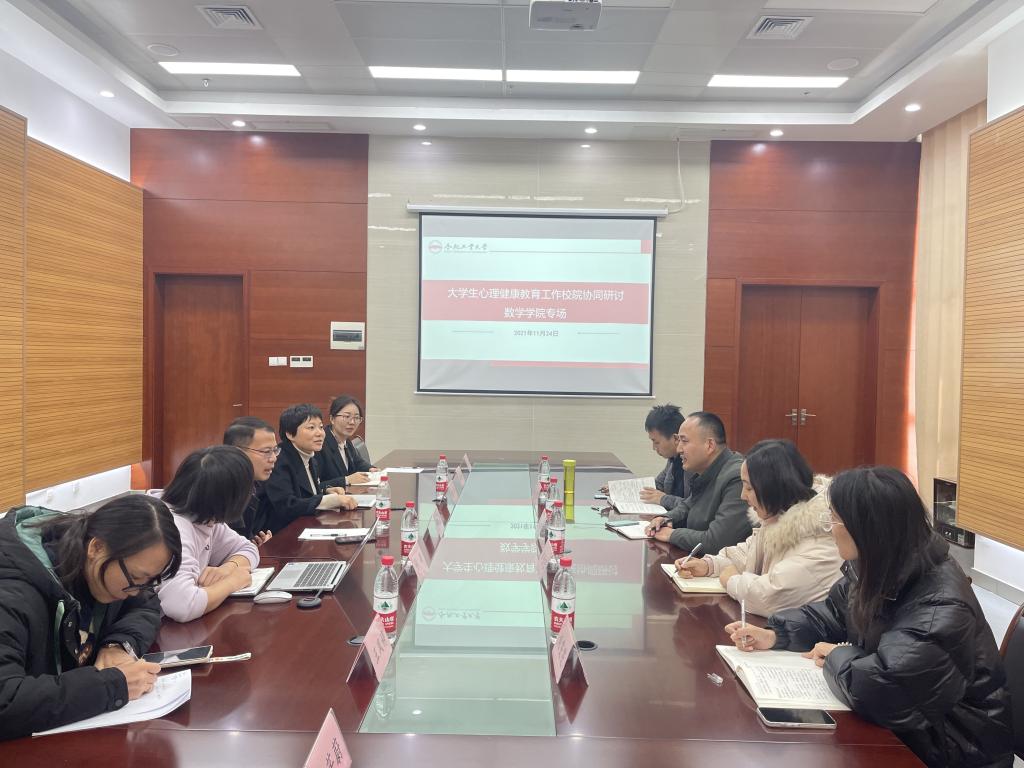 11月24日下午,新葡的京集团8814vip2021年心理育人工作校院协同研讨会在翡翠湖校区科教楼A座第三会议室举行。党委学生工作部心理健康教育与咨询中心、学院相关领导和老师参加了会议。学院党委书记范仁庆代表学院向心理健康教育与咨询中心各位领导老师表示欢迎,数学学...