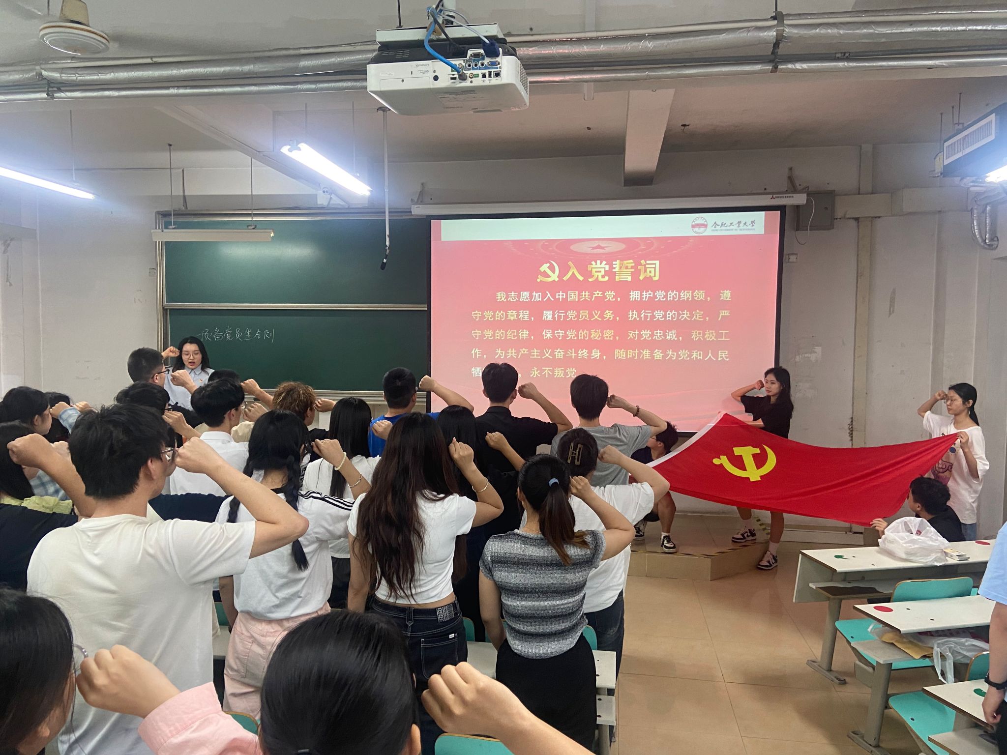 在中国共产党成立103周年到来之际,2024年6月24日下午,新葡的京集团8814vip在翠7教101教室组织开展迎“七一”主题党日活动暨2023-2024学年新发展党员宣誓仪式。本次活动由学院党委书记范仁庆主持,9个师生党支部全体党员参加。
