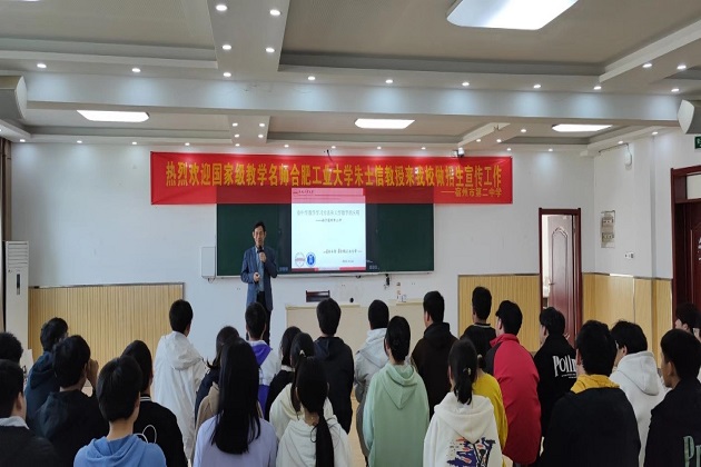 在宿州二中,朱士信教授为高三学子们带来了一场精彩的报告,报告现场座无虚席、掌声不断。 同学们从朱士信教授幽默生动的语言中了解了新葡的京集团8814vip和新葡的京集团8814vip,在朱士信教授真实感人的经历中理解了天才是不断努力并善于抓住机遇的普通人,进一步增强了努力学习、成才报国的自信。报告会后,朱士信教授与同学们合影留念,相约金秋合工大再见
