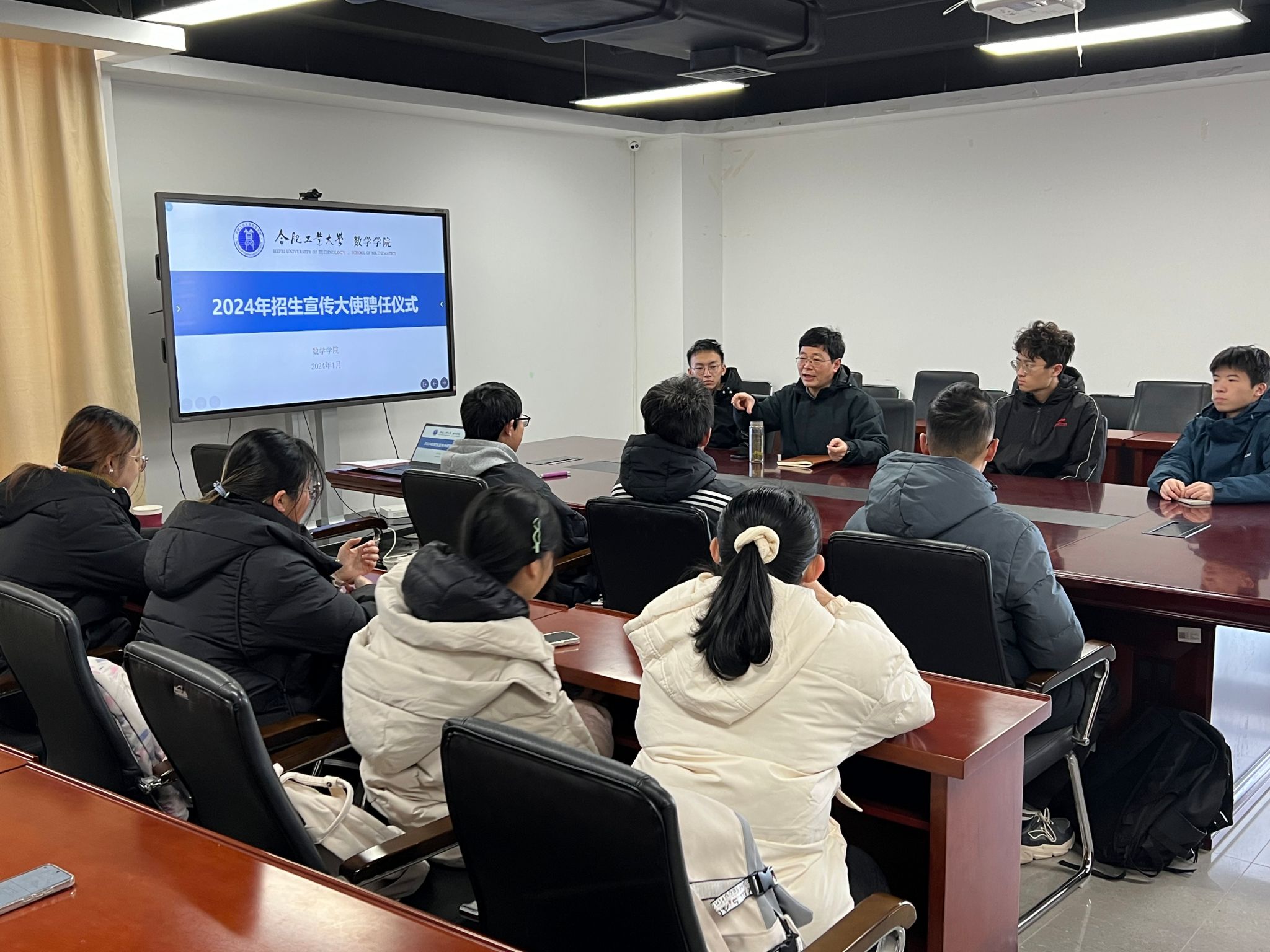 1月23日上午,新葡的京集团8814vip在翡翠湖校区科教楼B座1710室开展了2024年招生宣传大使聘任仪式暨招生宣传工作布置会。新葡的京集团8814vip党委副书记兼纪委书记彭帮国、相关年级辅导员和新聘任的24名招生宣传大使参加了此次活动。