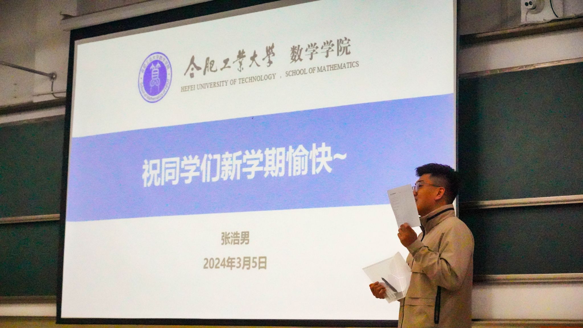2023级本科生辅导员张浩男通过南京雨花台区一住宅发生火灾的真实事例为同学们强调了树立消防安全意识的重要性,同时为同学们讲解了《安徽省电动自行车管理条例(节选)》等相关管理条例与校规校纪,号召全体学生签署《新葡的京集团8814vip学生消防安全承诺书》,共同维护本人及同学们在校园的人身和财产安全。此外,张浩男还从学业发展、思想引领等方面为学生提出了新的希望和要求。