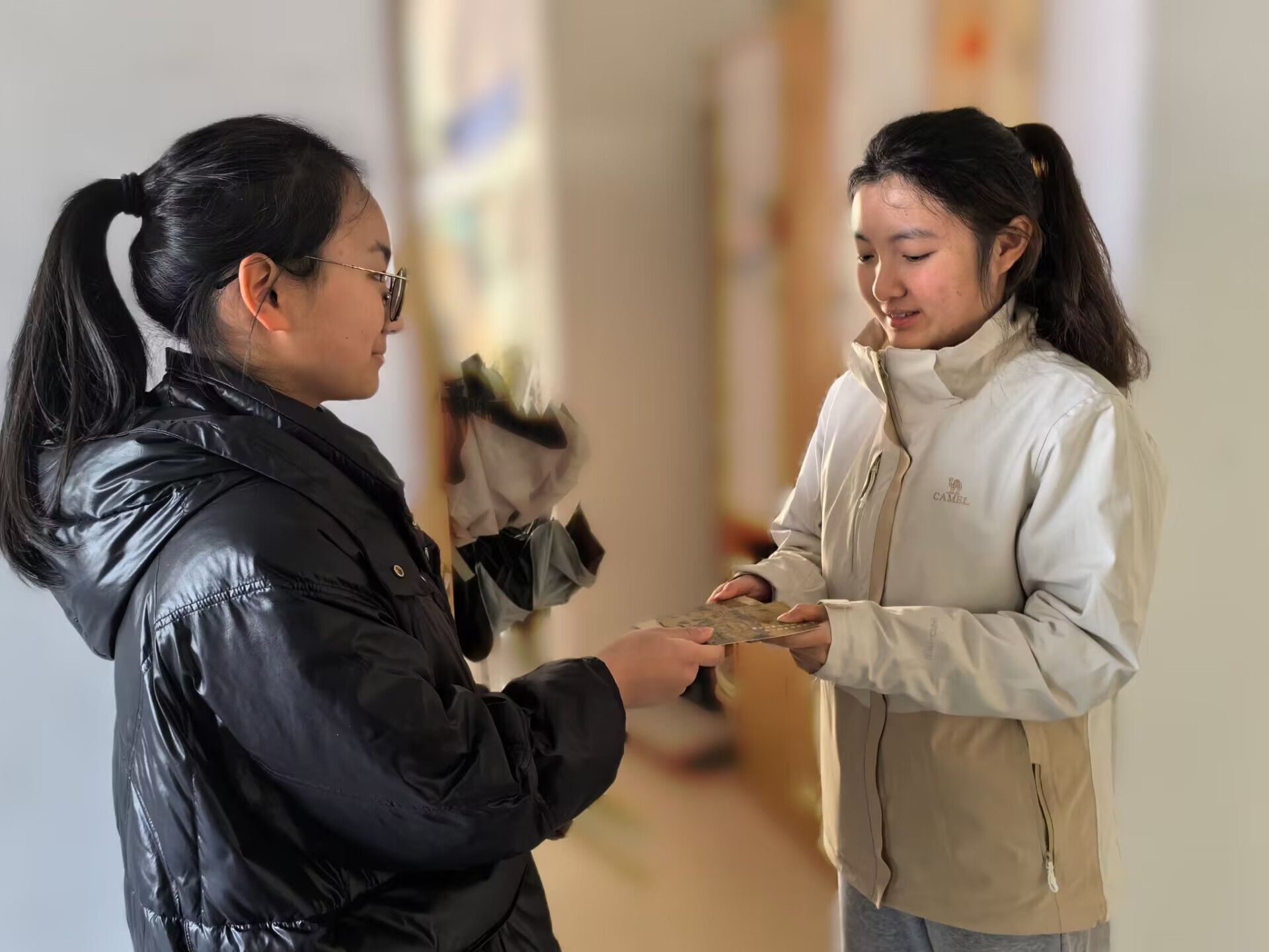 活动的筹备工作在几周前就已经悄然展开,由学生会成员和辅导员共同策划。我们精心挑选了礼品,设计了贺卡,分组前往每一间女生寝室,亲手将礼物送到她们手中。每人一瓶AD钙奶,寓意着健康和活力,精美的贺卡,上面写着温馨的祝福语和鼓励的话,希望每位女生都能在新的一年中,如数学中的几何图案一般,不仅对称美丽,更充满着智慧和力量。