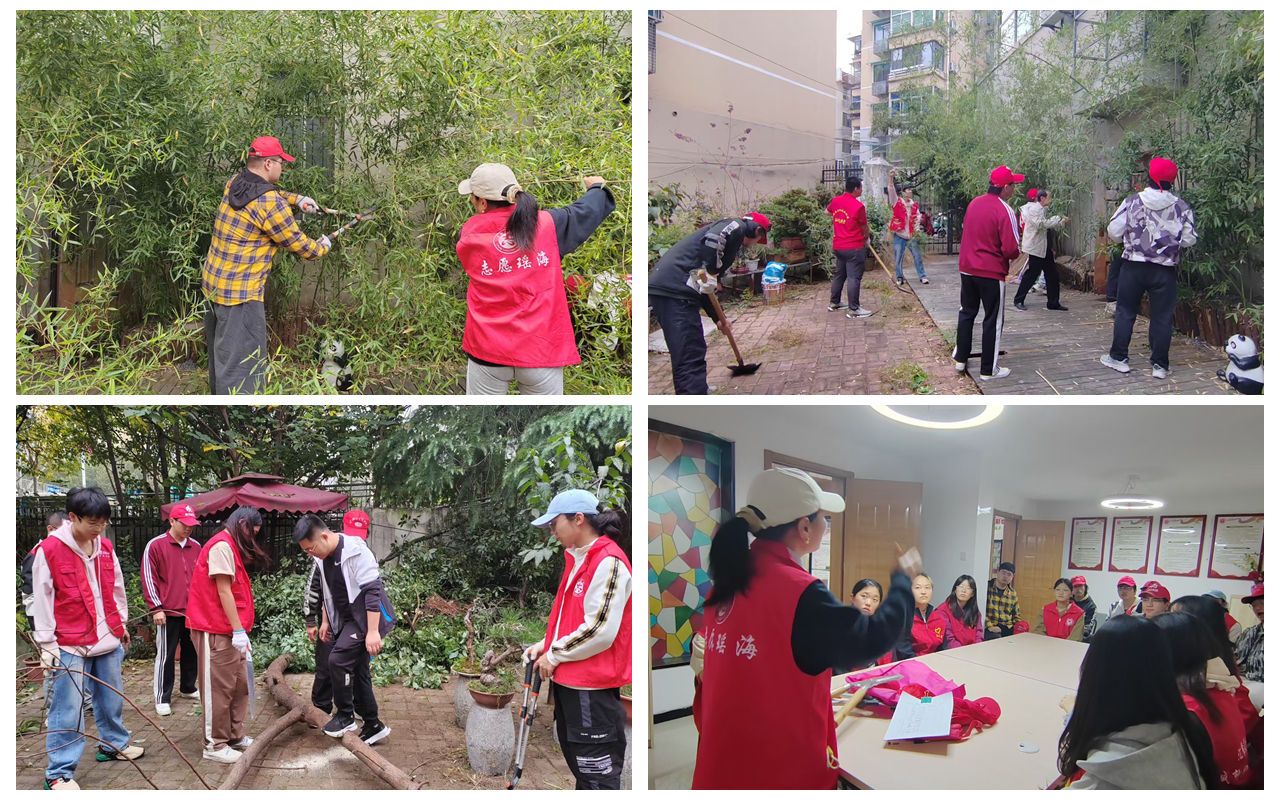 前往明光路街道的同学们在街道工作人员的带领下先后开展了修剪竹子、打扫卫生等工作,并在社区会议室畅谈了此次劳动的收获,得到了街道工作人员和当地居民的一致好评。