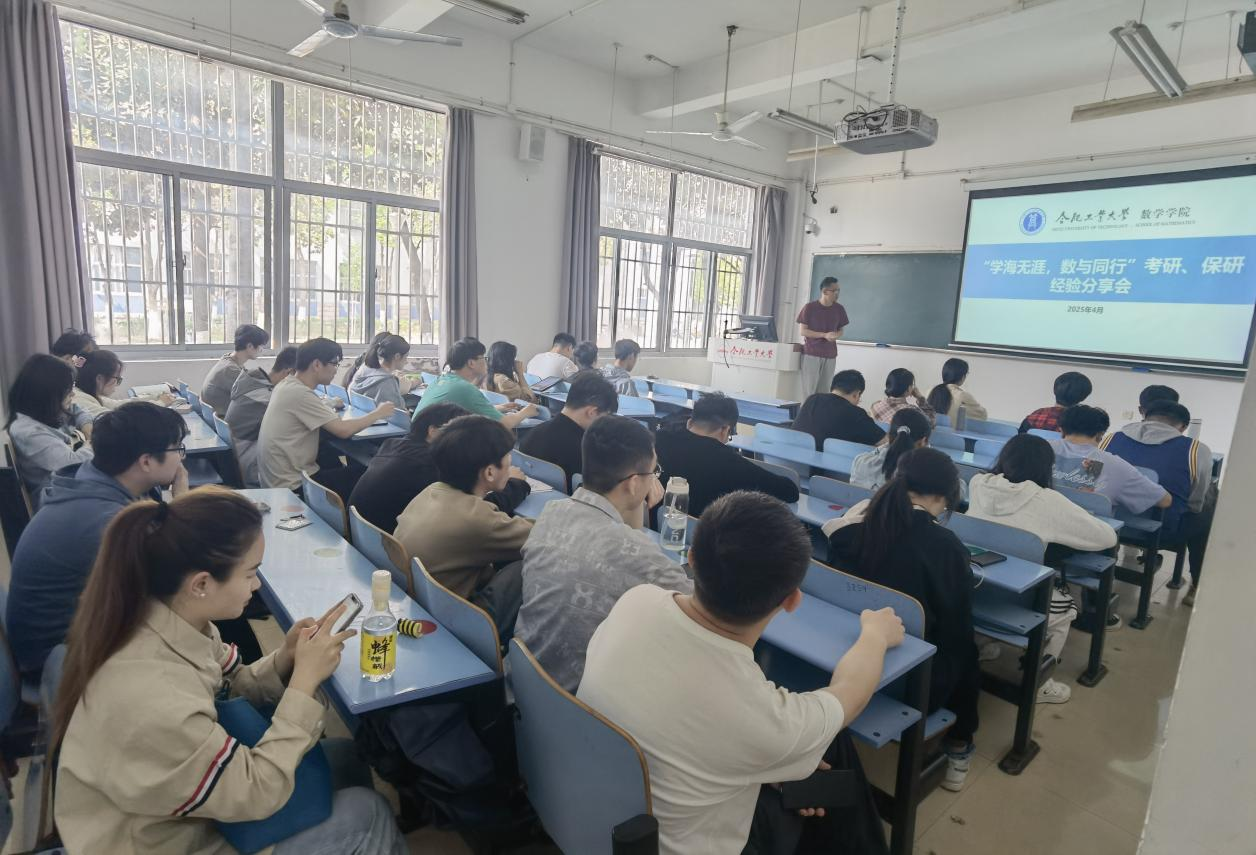 4月27日下午,新葡的京集团8814vip在翡翠湖校区翠六教105开展“学海无涯,数与同行”考研、保研经验分享会。本次分享会由辅导员卞士挺主持,邀请秦致远、何梦颖、蒋艺都、郭晓涵四位优秀学长学姐,围绕保研、考研两个主题分享经验,2022级30余名同学参加会议。