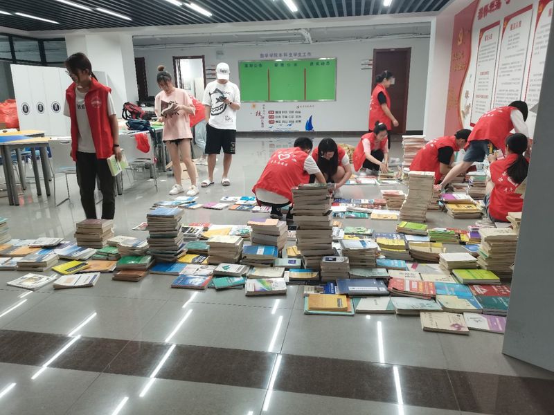 新葡的京集团8814vip志愿者前期到各宿舍楼进行书籍收集与搬运,并根据书籍内容进行分类整理,分为考研类,自我提升类,教材类等三个种类,方便低年级学生选择取用。30日下午,在志愿者们的细心组织下,五十余位数院学子来到现场进行书籍选取。