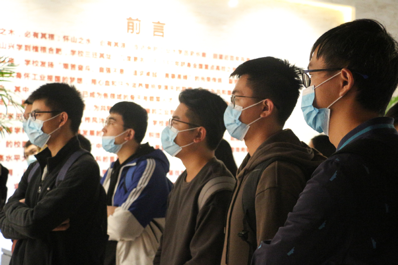 校史馆红墙灰瓦,古朴厚重。学院党委书记范仁庆、党委副书记、纪委书记魏婷,学生辅导员老师等带领同学们穿过院士长廊,校歌校训和人才培养总目标格外醒目,“四区一院”映入眼帘。大家深切回顾了学校从事业初创到跃升重点、从改革前行到创新发展、从硕果累累到校友风采的不同时期展厅,结合实物、照片、文献等资料,学校75年办学历程中一帧帧画面、一行行文字、一个个框图,再现了一代代工大人扎根江淮大地、矢志工业报国的发展史,筚路蓝缕、风雨兼程、自强不息、薪火相传的奋斗史!