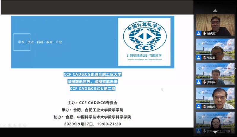 2020年9月27日晚上19:00,“深探数形世界,遥视智能未来”暨CCF CAD&CG走进新葡的京集团8814vip研讨会在我校召开。本次研讨会以bilibili直播平台+腾讯会议的形式开展。国家杰青获得者、长江学者浙江大学鲍虎军教授,莫纳什大学数据科学与人工智能系主任蔡剑飞教授,国家杰青获得者中国科学技术大学刘利刚教授等三位活跃在计算机与数学交叉领域的学者应邀联袂为我校师生带来精彩的学术报告。新葡的京集团8814vip刘晓平教授、檀结庆教授、郑利平教授为本次会议的特邀嘉宾兼主持人。