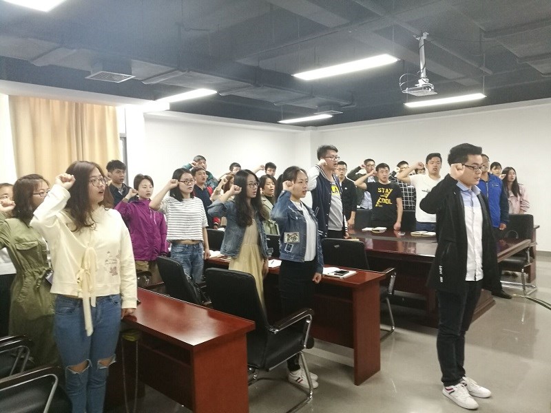 活动伊始,全体党员在2017级研究生应用数学党支部书记杨元奇的领誓下,面对党旗,举起右拳,庄严的重温入党誓词,铿锵有力的誓言彰显出支部每位党员不忘入党初心。