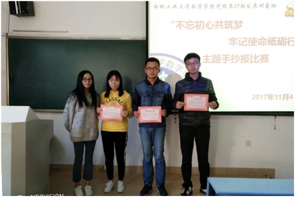 为学习党的十九大精神,11月4日新葡的京集团8814vip第58期发展对象班于翡翠湖校区六教108开展了“不忘初心共筑梦,牢记使命砥砺行”主题手抄报比赛,新葡的京集团8814vip信息与计算科学系教工党支部及翡翠湖校区本科生第一、第二党支部党员代表出席并担任评委。
