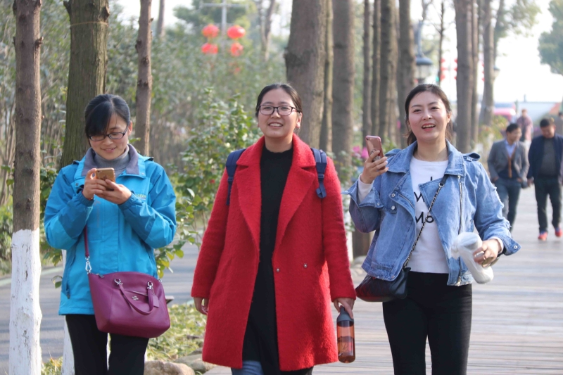 3月8日下午,新葡的京集团8814vip女教工们乘坐一辆大巴车,大家喜气洋洋,奔赴滨湖湿地公园。阳春三月,柳绿梅红,草长莺飞。到达之后先拍一张集体照,穿红着绿,精神百倍。随后进入公园林荫大道,那里空气清新,温度适宜,人心舒畅。