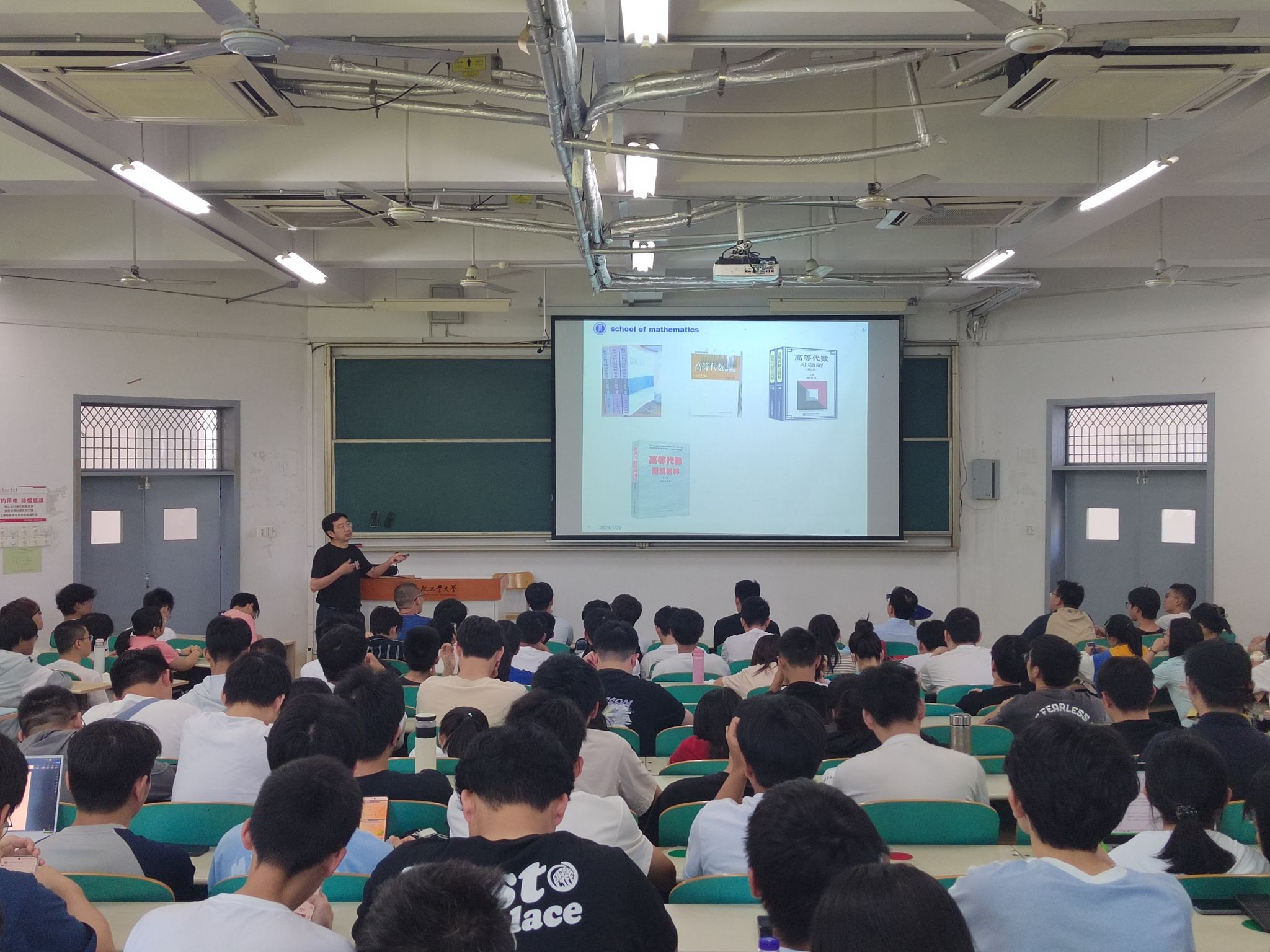 5月29日,由党委学生工作部(处)主办、新葡的京集团8814vip承办的第十六期斛兵学子“学习悦享荟”学业指导讲座在翡翠湖校区九教101教室举行。本次讲座以“数海求真,数造未来”为主题,特别邀请了学院唐烁教授、开晓山教授就数学专业人才培养、学科竞赛和大学数学学习,及创新意识培养等方面作专题讲座。本次活动由学院党委副书记兼纪委书记彭帮国主持,共150名学生参加,现场座无虚席。
