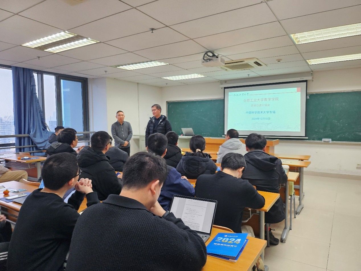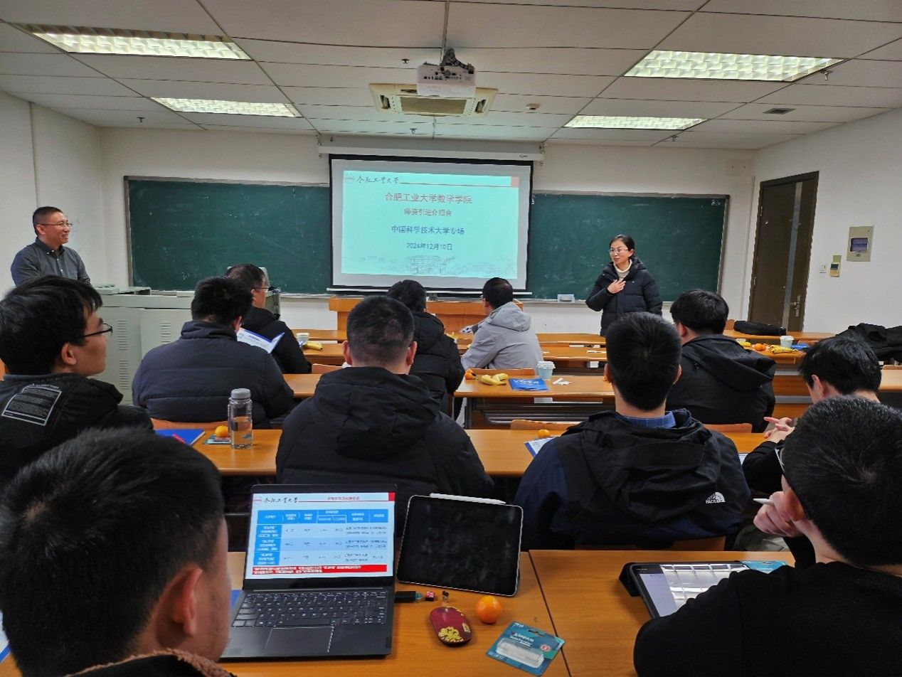 12月10日下午,新葡的京集团8814vip党委书记范仁庆、副院长田可雷一行6人赴中国科学技术大学数学科学学院召开专场人才招聘会。中国科学技术大学数学科学学院党委书记左达峰、副院长陈小伍、副书记郑芳、办公室主任黄稚新以及部分特任副研究员、博士后和即将毕业的博士生参加了交流。