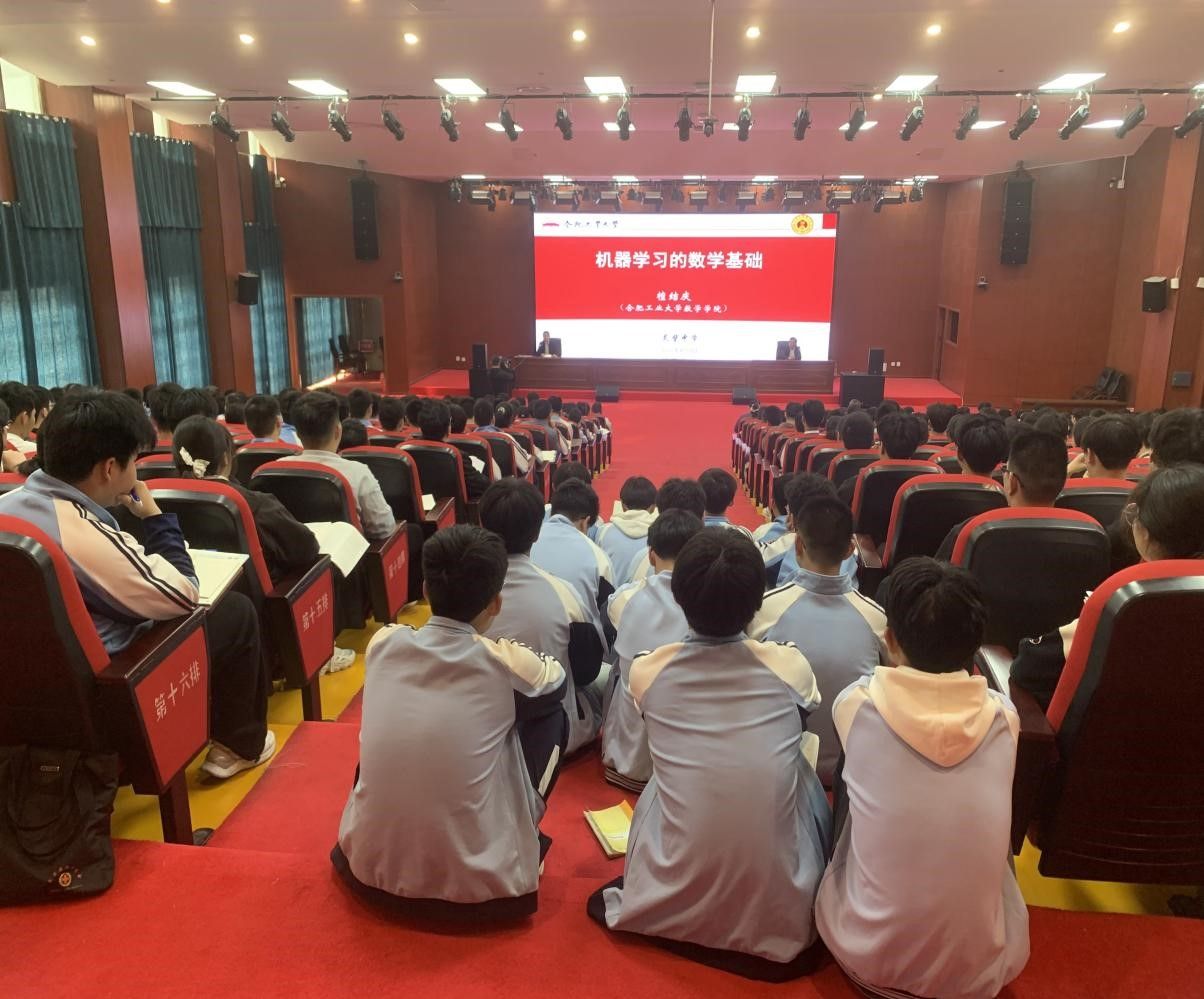 9日下午,学院赴灵璧中学开展招生宣传,檀结庆教授为近千名中学生作了《机器学习的数学基础》的科普报告,该校王峰校长主持了报告会。檀结庆教授结合当前AI发展为背景,从概率论、计算数学等多种角度去解释其背后蕴含的数学逻辑,激发学生努力用创新思维去探索未来。高质量报告会赢得了现场学生雷鸣般掌声和由衷的称赞,报告会结束后仍有大量学生围住檀结庆教授索要签名,并表示立志打好数学基础,将来学以致用,报效国家和社会。