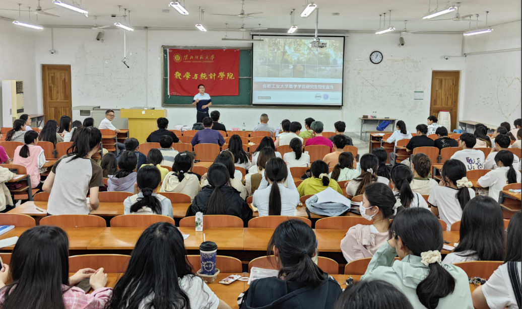 在淮北师范大学数学与统计学院,与学院党委书记吴守宝、院长卓泽朋等领导召开了座谈交流会。座谈会后,学院面向2026届数学专业毕业生举行了研究生招生宣传活动,宣讲会介绍了新葡的京集团8814vip的悠久历史、深厚底蕴以及在学科建设、师资力量、科研创新等方面取得的显著成就,解读了研究生招生政策,包括招生计划、专业设置、考试科目、奖学金体系等关键信息,并回答同学们关心的问题,以期吸引更多优秀学子报考新葡的京集团8814vip。