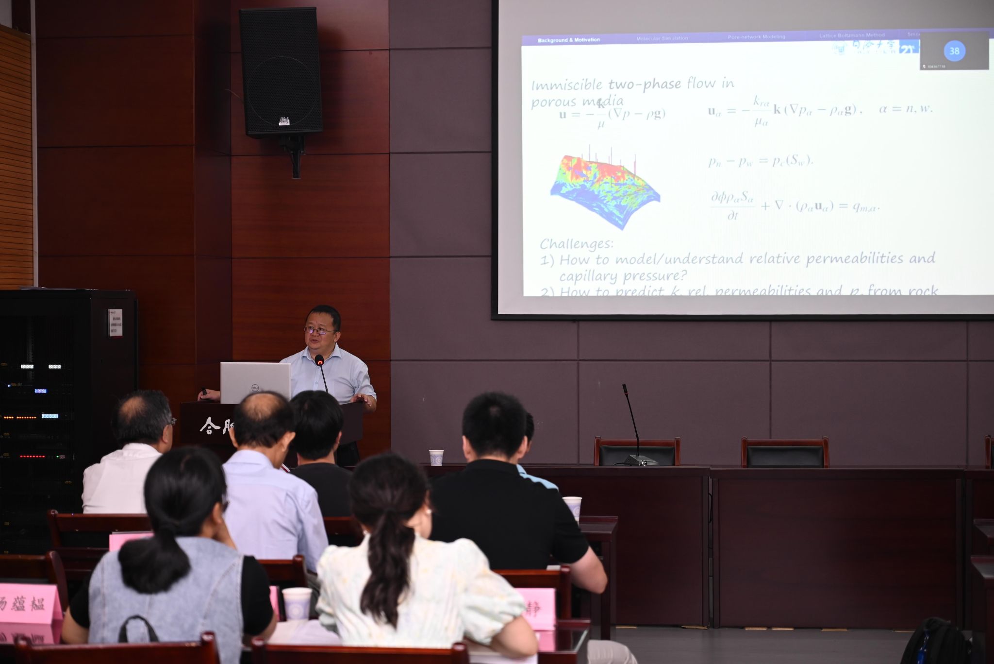 学术报告会上,同济大学孙树瑜教授、新葡的京集团8814vip李道伦教授、中国地质大学潘焕泉教授、中国石油大学蔡建超教授、宁波东方理工大学陈云天教授等专家先后围绕数值模拟、智能控制、AI大模型与数据处理等多个前沿方向,带来了“数字岩心流动模型的高效鲁棒算法”、“油气田智能生产优化技术”等14场精彩报告,引发了现场热烈讨论与深入交流。