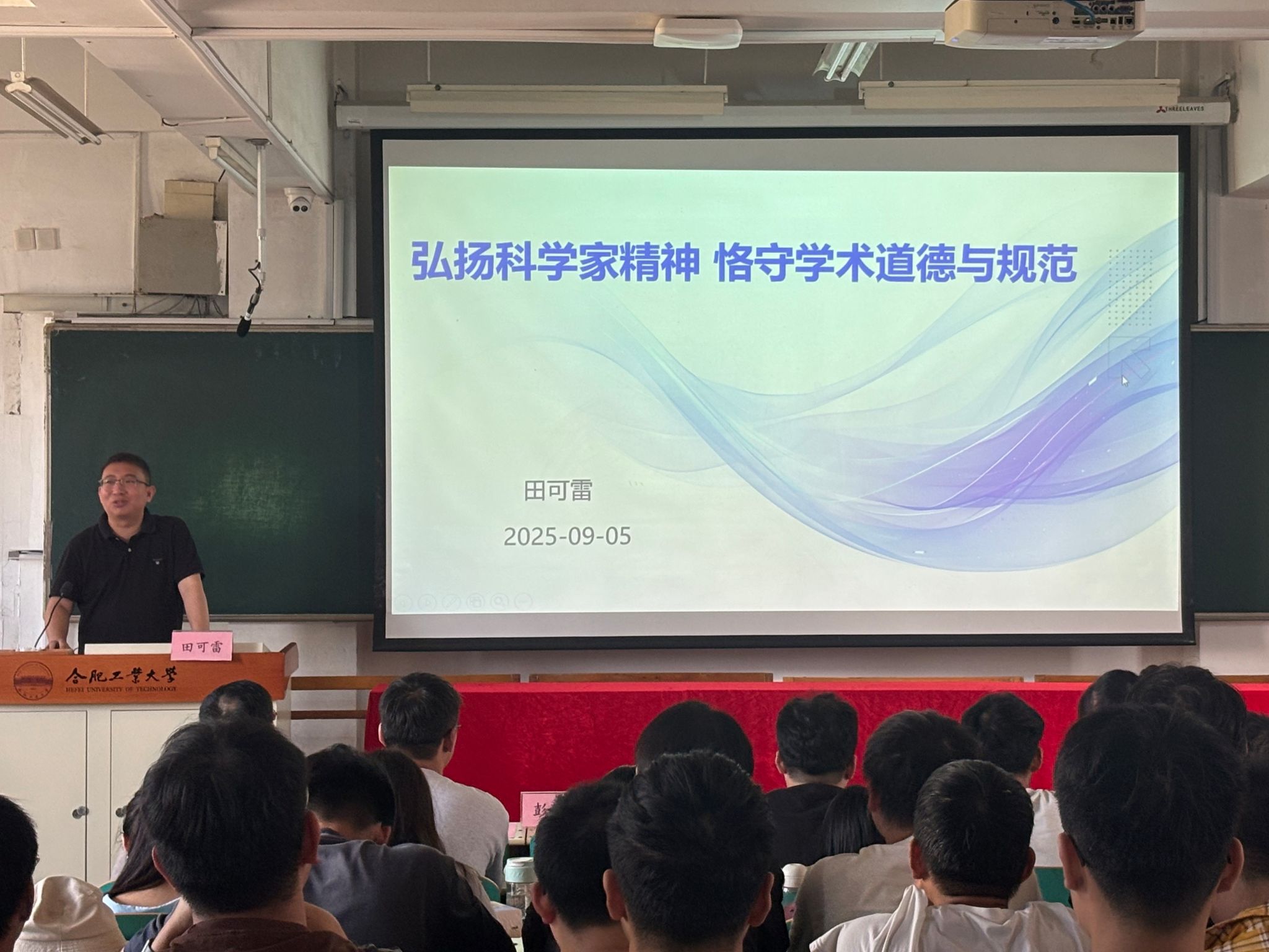 田可雷教授以 “学术诚信与成长规划” 为主题开展专题报告。他结合自身学术经历,语重心长地叮嘱新生:一要快速调整学习与研究状态,适应研究生阶段的培养节奏;二要重视基础课程学习,为后续科研工作筑牢根基;三要主动培养创新思维,敢于在学术领域探索突破,努力成为 “守正创新、求真务实” 的数学研究者。田教授的分享既为新生明确了成长方向,也传递了严谨治学的学术精神。