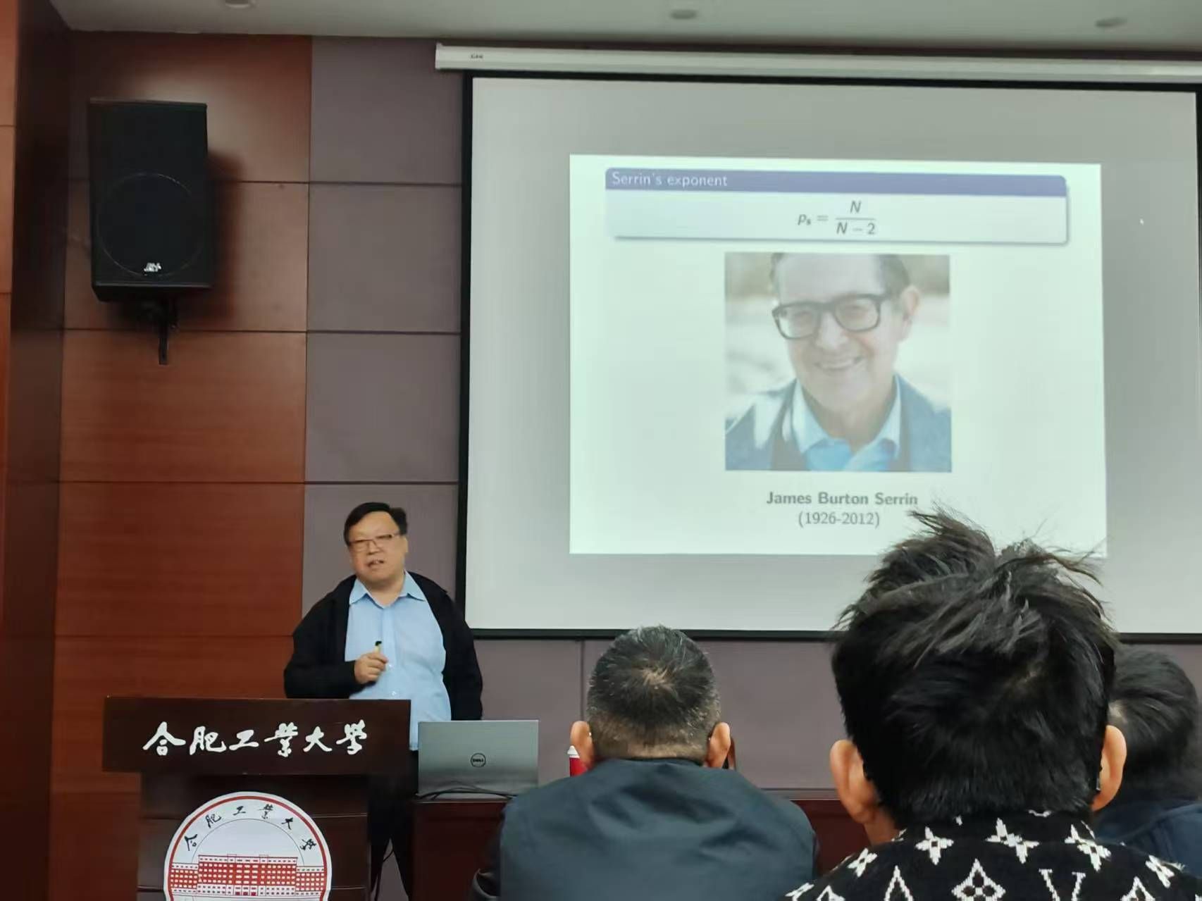报告系统梳理了近几十年来非线性方程解的分类领域的Liouville型与De Giorgi型结果,深入剖析其核心思想,并重点列举当前尚未解决的关键问题。报告中,魏军城教授首先聚焦Liouville型结果的发展脉络。这类以法国数学家Joseph Liouville命名的结果,核心在于通过方程结构与解的性质限制确定全空间或非紧区域上解的存在性与唯一性,是揭示方程“刚性”特征的重要工具。他指出,从经典椭圆方程到拟线性、完全非线性方程,Liouville型结果已实现多维度拓展。针对De Giorgi型结果,魏军城教授回溯了1978年意大利数学家De Giorgi提出的经典猜想——小于8维全空间中特定非线性椭圆方程的单调解是否具备一维对称性。他介绍,近几十年的研究已将这一猜想的核心思想转化为更广泛的解分类方法,通过分析解的渐近行为与对称性,成功在完全非线性椭圆方程中建立了De Giorgi型性质,为理解方程解的结构提供全新视角。魏军城教授最后罗列该领域多个悬而未决的难题并激励年轻的数学工作者加入这一领域的研究,他表示,这些问题的解决将进一步推动非线性偏微分方程与几何、物理等学科的交叉融合。