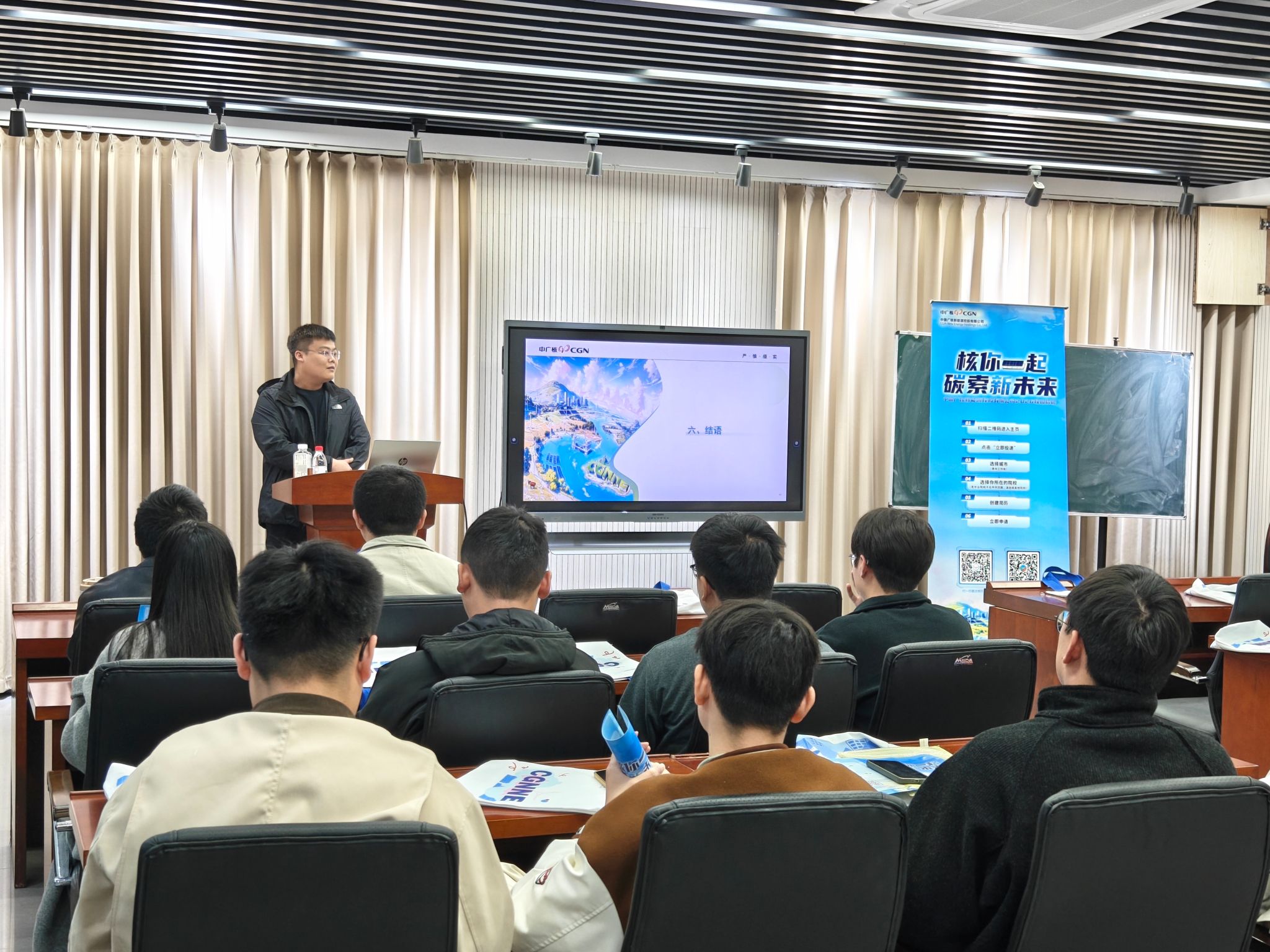学院党委副书记彭帮国对中广核(安徽)新能源投资有限公司一行来访表示欢迎,并对校企开展更深入合作表达了愿望。随后,中广核(安徽)新能源投资有限公司人力资源部负责人与业务专家对公司情况进行了专题宣讲,现场收取学生简历、组织面试。