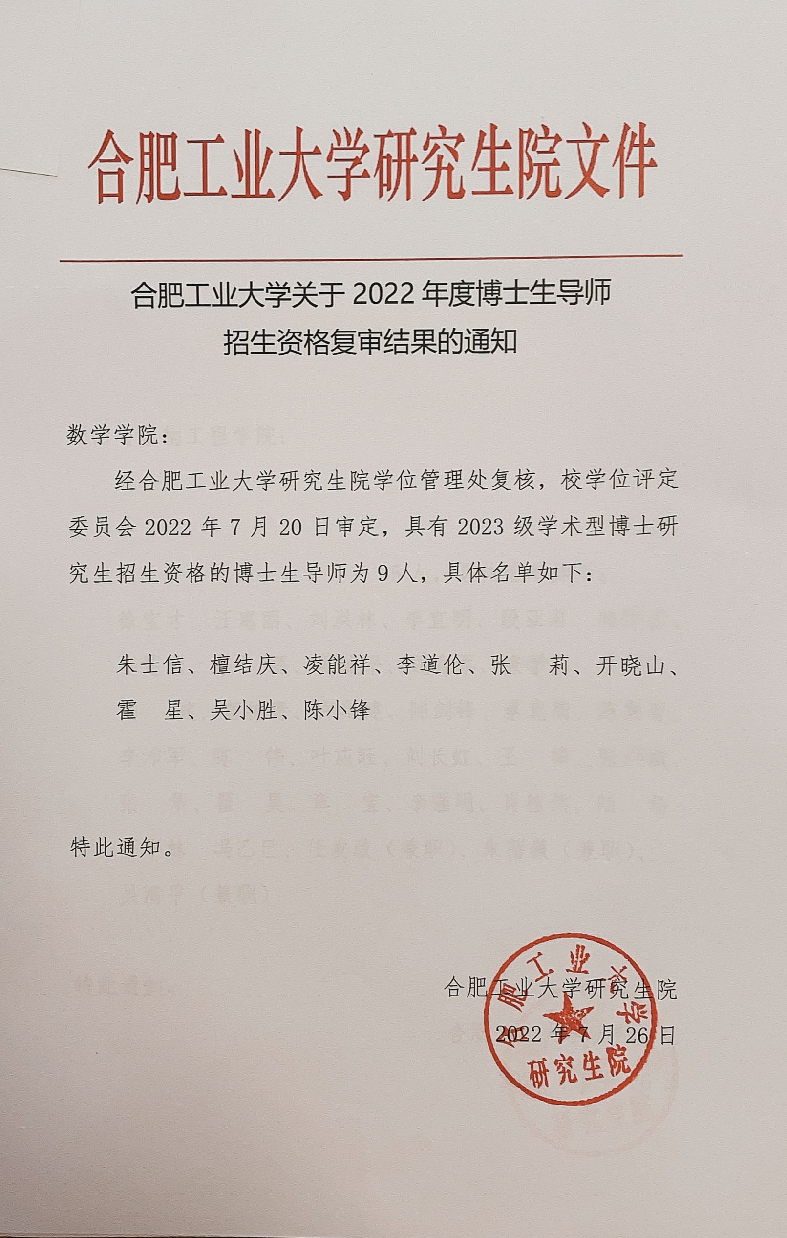 公示:新葡的京集团8814vip2022年度博士生导师招生资格的复审结果