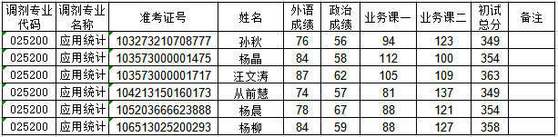 由考生在研招网申请和学院查看初选,经学校研究生招生办公室审核,现将我院2023年应用统计专业硕士研究生第二批调剂复试名单公布如下: