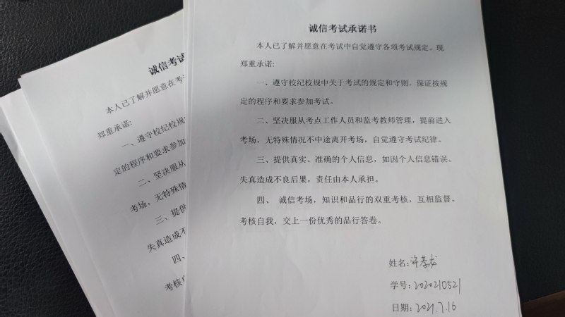本次宣讲结束后,全体与会学生在班长的组织下,朗读并签订了《诚信考试承诺书》。本次考风考纪教育是诚信教育的重要组成部分,旨在进一步规范考试管理,严肃考风考纪,树立风清气正的教风、学风、校风,为学校严谨的考场撑起一道“诚信、文明、笃学、勤奋”的风景线。