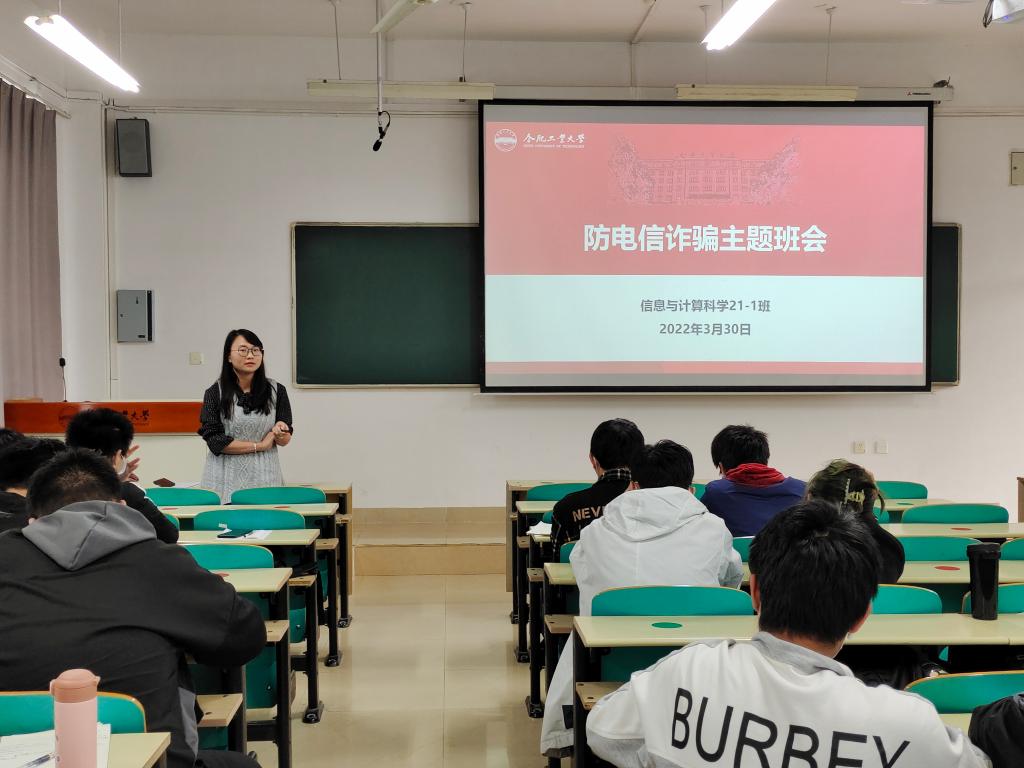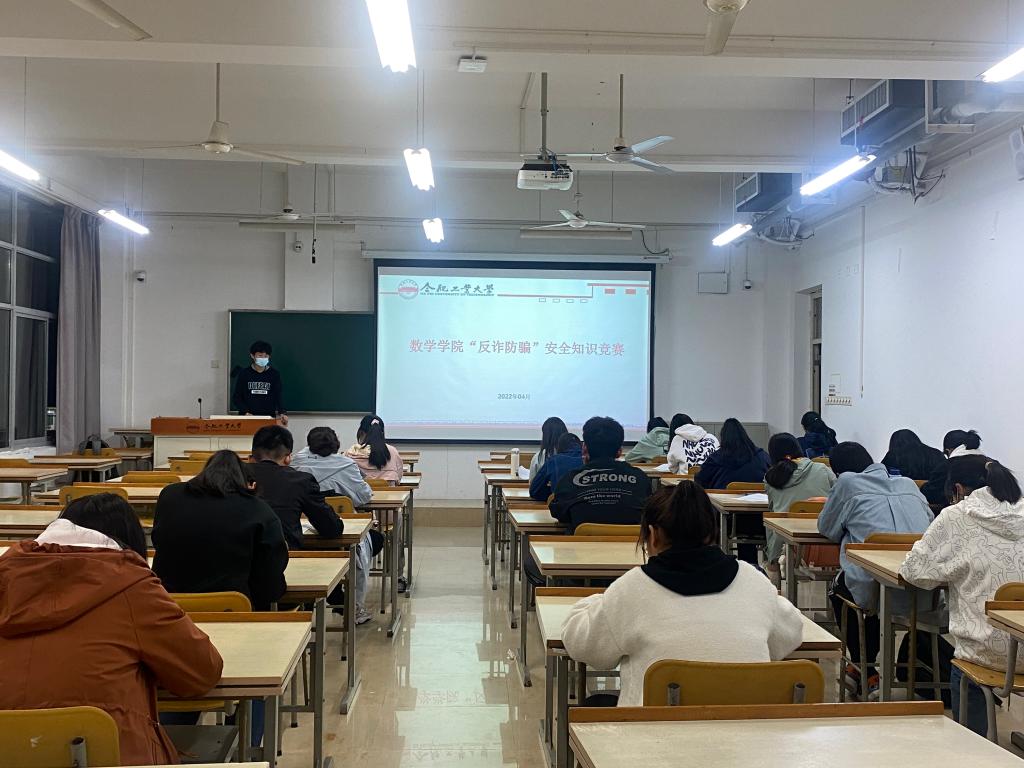 组织一次防诈骗知识竞赛。4月16日晚,新葡的京集团8814vip“反诈防骗”安全知识竞赛在翡翠湖校区4教405教室举行。竞赛分为选择题和判断题两部分,参赛同学利用所掌握的电信诈骗知识和反诈技巧熟练答题。经过激烈角逐,罗梦获得一等奖、李格菲和王淑娇获得二等奖、赵筱珮等3名同学获得三等奖。