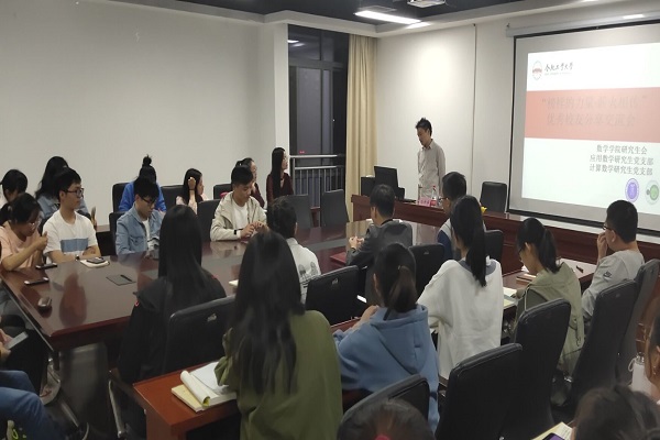 为促进低年级研究生明确自己在未来的研究生学习中的方向,做好研究生生涯规划,10月26日晚8点,新葡的京集团8814vip研究生会、应用数学研究生党支部和计算数学研究生党支部在翡翠科教楼1710举行了“榜样的力量,薪火相传”——优秀校友分享交流会,本次交流会邀请到了毕业于新葡的京集团8814vip16级博士孙中华主讲,新葡的京集团8814vip研究生会主席朱娅婷主持。