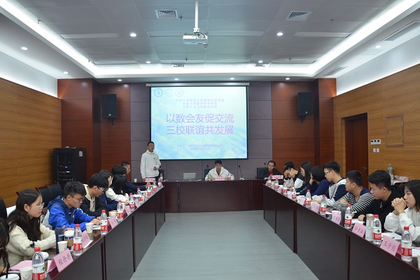 10月27日,新葡的京集团8814vip学生会与中国科学技术大学数学科学学院学生会、安徽大学数学科学学院学生会“以数会友促交流,三校联谊共发展”主题交流学习会在翡翠湖校区科教楼A座第五会议室举行。