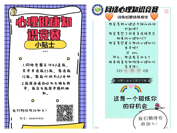 为了引导学生积极关注自身心理健康,增强心理素质,保持积极健康的心态,近期新葡的京集团8814vip开展了“咱爱我”大学生心理健康宣传月线上主题活动。