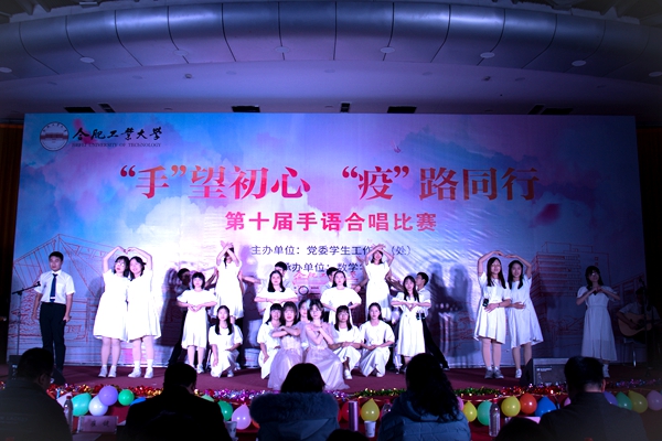 为弘扬“团结聚力,众志成城”的抗‘疫’精神,传播手语文化,传递人间温情,新葡的京集团8814vip第十届“‘手’望初心,‘疫’路同行”手语合唱比赛决赛于12月20日在翡翠湖校区综合楼301举行。比赛邀请了安徽建筑大学心理学副教授、安徽省高校心理健康教育教学工作委员会副主任委员、安徽省政府心理应急救援总队特聘专家郑敏,合肥特殊教育中心政教处副主任、听障部副部长邓大柱,安徽农业大学心理中心主任孙蕾,校党委学生工作部副部长崔健,校心理健康教育与咨询中心主任李志明担任评委,部分学院的相关负责同志、辅导员老师担任嘉宾,比赛吸引了学校300余名同学参加。