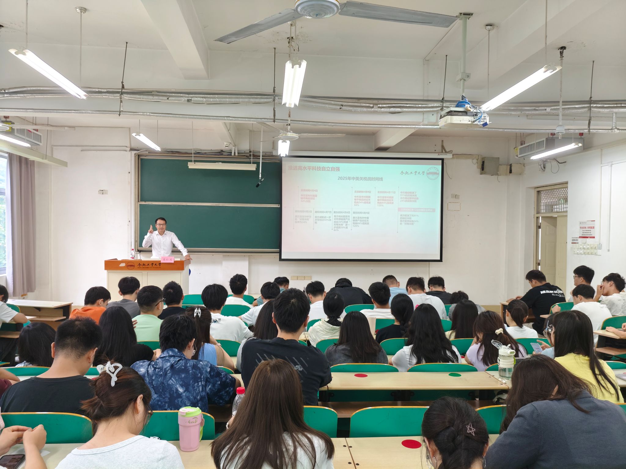 2025年9月7日下午,在五教301,党委书记范仁庆为2025级新生做《立报国强国大志,做挺膺担当奋斗者》开学第一堂思政课。