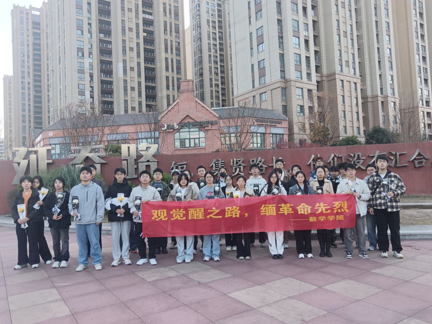 在纪念碑前,同学们手持鲜花肃立默哀,缅怀为民族独立和人民解放献身的革命先烈。参与同学表示,此次活动是深刻的精神洗礼,未来将以先烈为榜样,把崇敬感动转化为学习动力,在数学研究中攻坚克难,以实际行动赓续红色基因,用青春担当书写时代答卷。